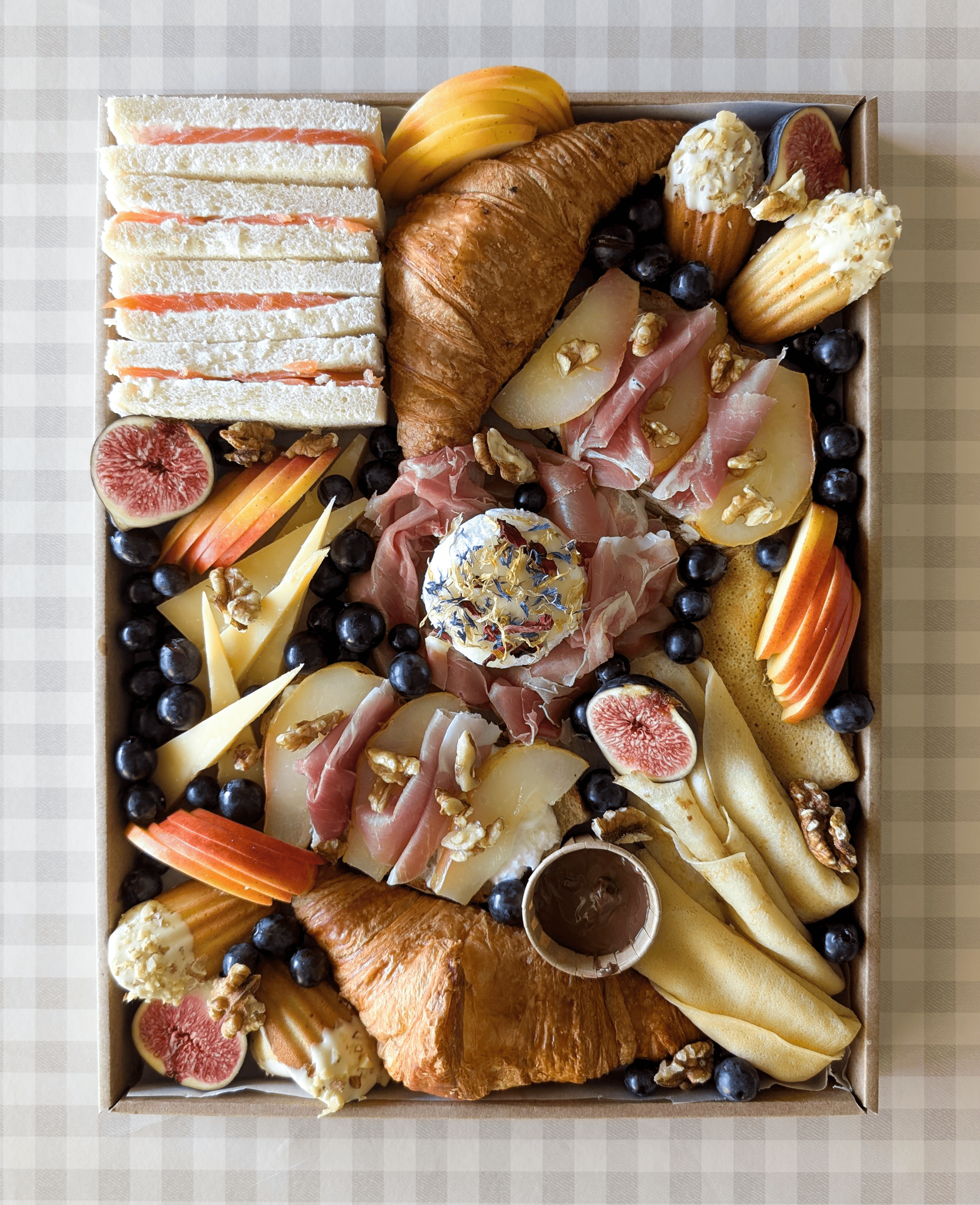 • Fromages sélectionnés :  comté (France) et chèvre frais (France) enrobé de miel et fleurs comestibles